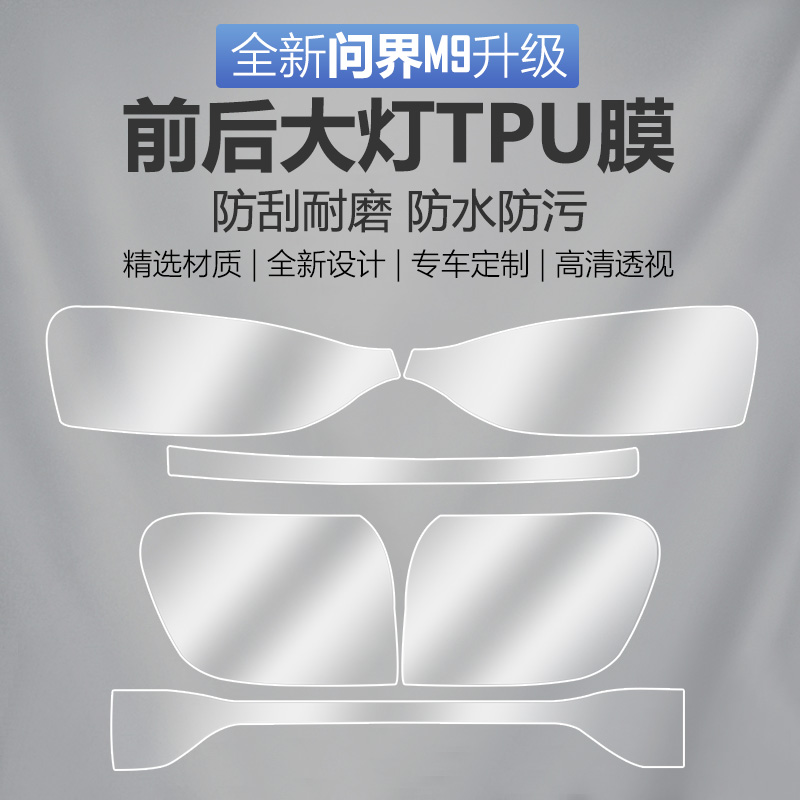 要改车【问界M9专用】改装前后大灯膜TPU大灯保护贴膜尾灯透明膜