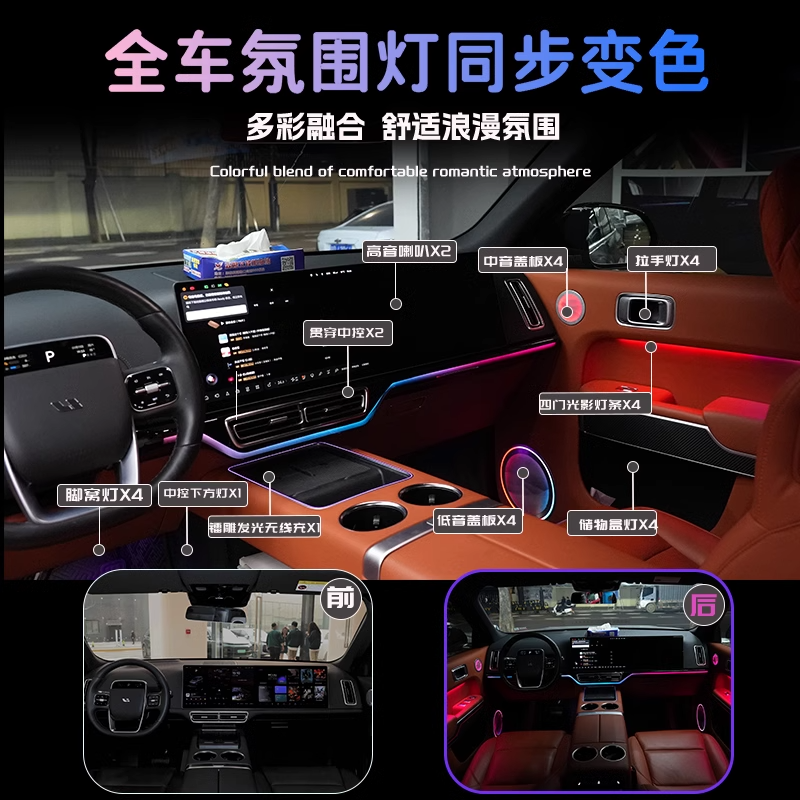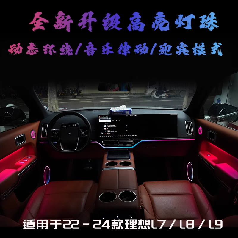 要改车【理想L9专用】动态光影氛围灯改装门板中控内饰脚窝灯车内气氛灯