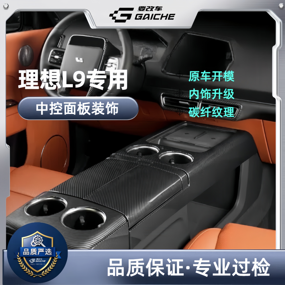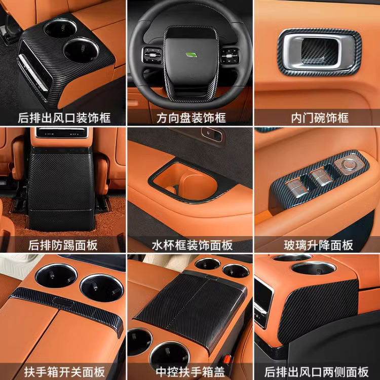 要改车【理想L9专用】中控面板装饰壳碳纤维扶手箱保护罩盖框冰箱防踢贴片